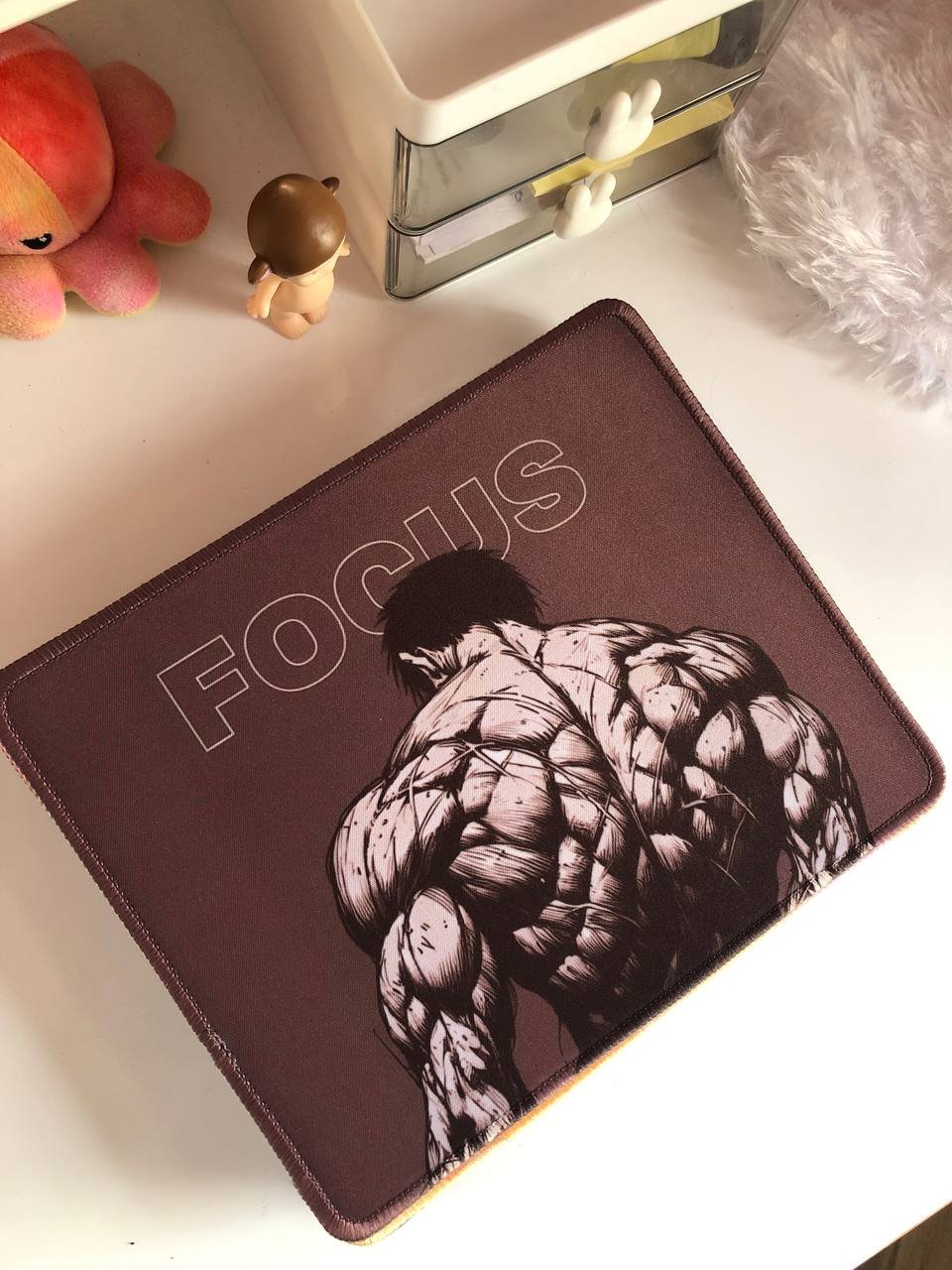 Channel your inner fighter and maintain your concentration with this Baki the Grappler mouse pad. Featuring the iconic “Demon Back,” this design is a powerful reminder to FOCUS and push your limits. It’s the perfect desk accessory for fans of the intense martial arts series, whether you’re a gamer, a student, or a dedicated weightlifter.