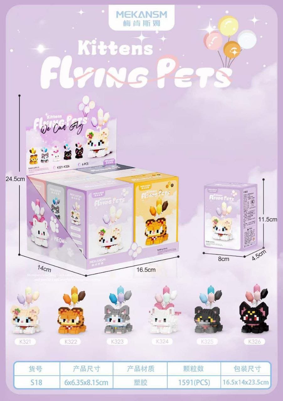 Flying Pets – Kitten Series (S18): 6 charming flying kittens with soft, whimsical designs.