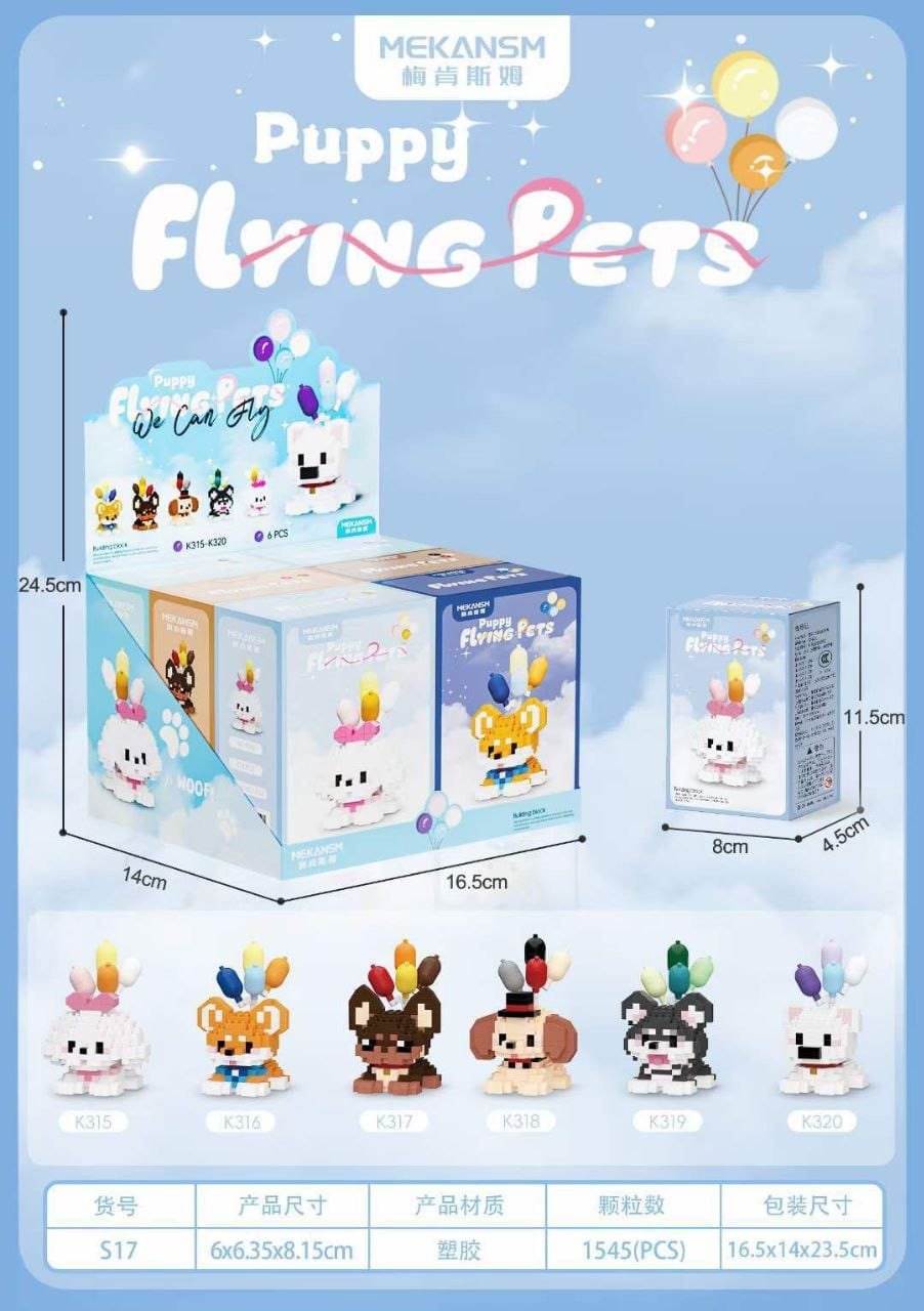 Flying Pets – Puppy Series (S17): 6 dreamy balloon-carrying pups with vibrant personalities.