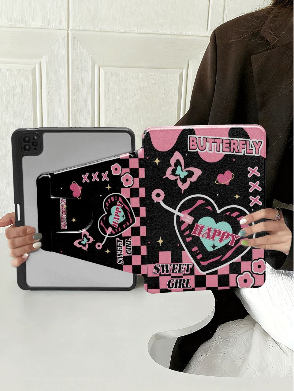 Y2K Aesthetic Pink and Black Butterfly iPad Case